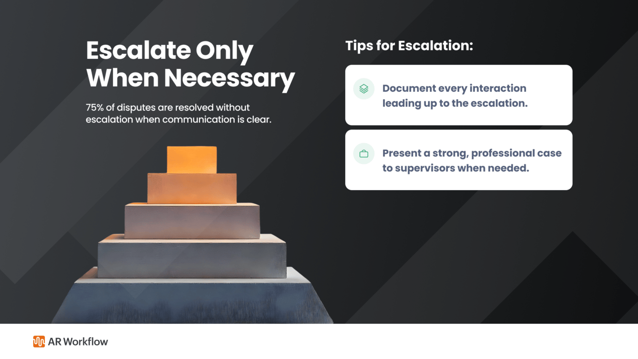 Sometimes, you’ll need to negotiate to reach a solution. Stay flexible, but protect your business. If necessary, escalate the issue to the adjuster’s supervisor or the claims department. Just make sure you’ve documented everything. And with AR Workflow, tracking these interactions is as simple as it can be.
